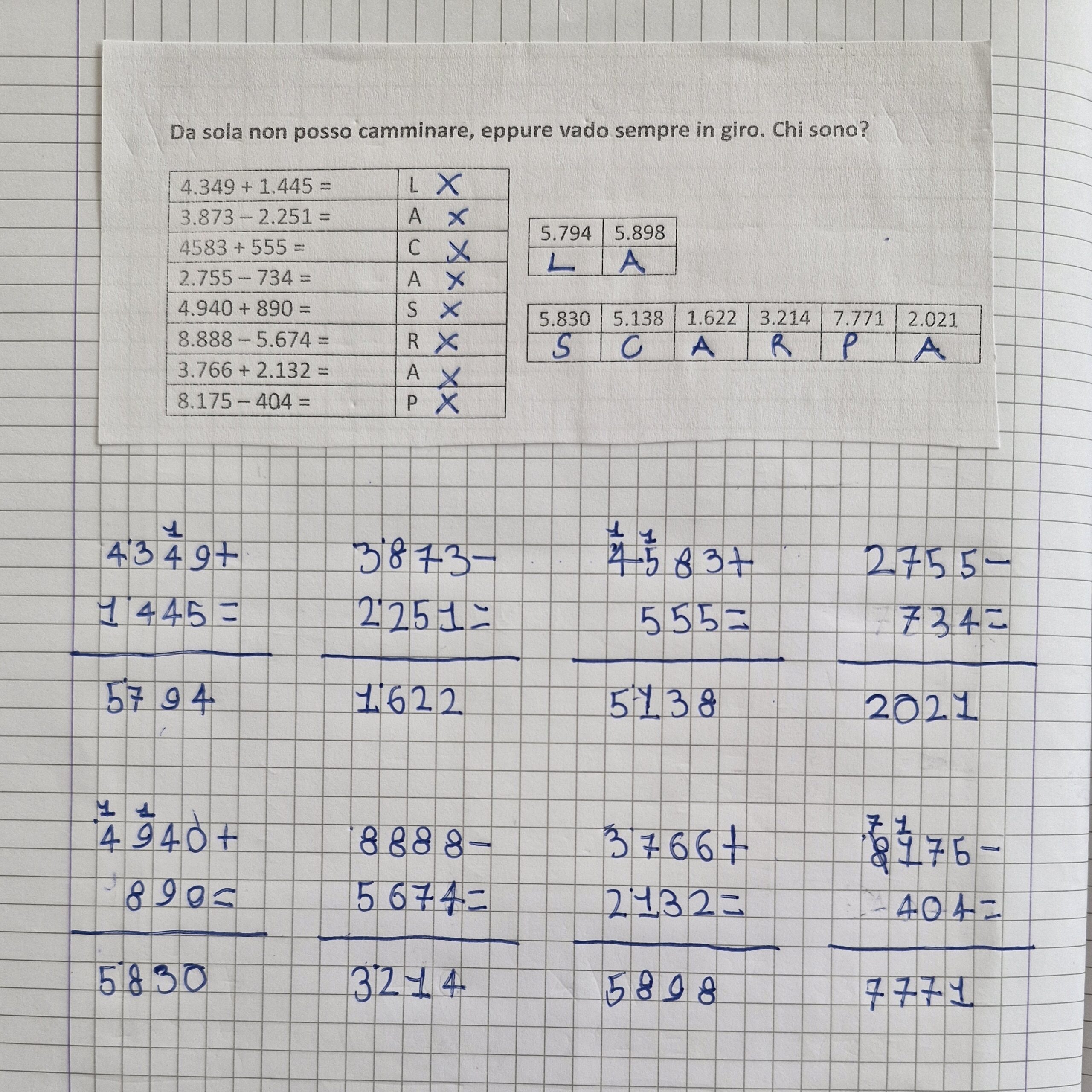 Per rinforzare l’acquisizione degli algoritmi del calcolo, ho strutturato degli esercizi in cui i bimbi…