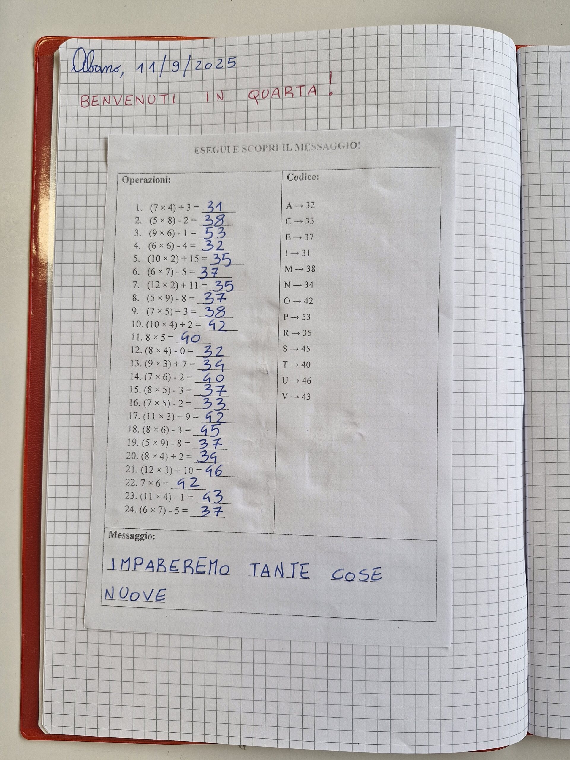 Esegui e scopri il messaggio: risolvere semplici calcoli ed espressioni per decifrare un messaggio segreto.